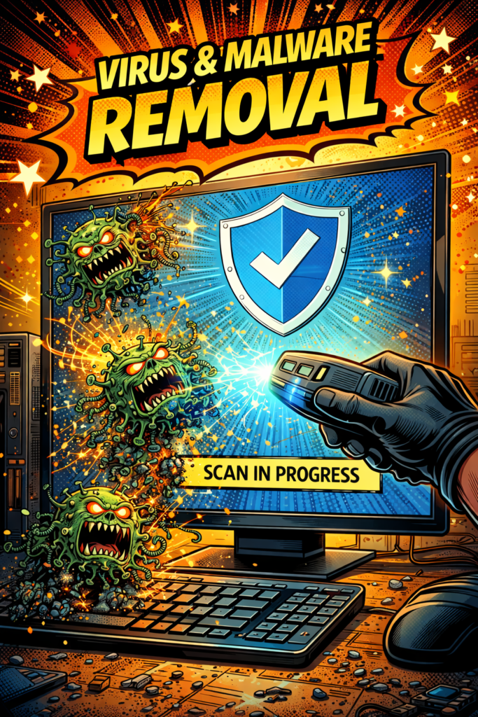 Viruses, malware, spyware, and other malicious software can slow down your computer, cause crashes, or compromise your personal data. We safely remove infections, repair system damage, and help secure your computer to prevent future threats.